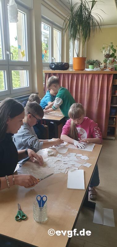 Zum GN am 7.Mai 2025 haben wir uns mit dem Material Gips, in Form von Gipsbinden, beschäftigt. Nach vorheriger Belehrung und Vorführung konnten sich die Kinder gegenseitig eine Gipshand modellieren.