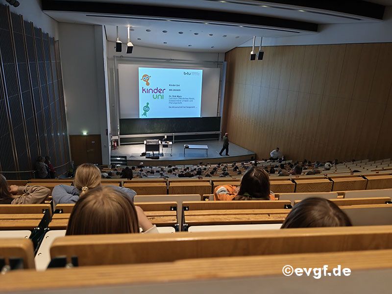 Am Donnerstag den 08.05.25 besuchten 20 Schüler*innen der Klassenstufen 3 bis 6, die Kinderuni der BTU – Cottbus. Das Thema des Vortrages war ,,Kinder machen Wissenschaft(en).