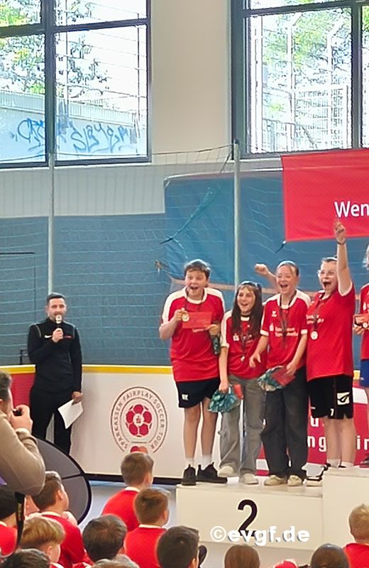 bild 4Am Mittwoch, den 21.05.2025 fuhren wir zum Sparkassen-Fairplay-Soccer-Cup nach Kolkwitz. Mit drei Teams, je 4 Schüler*innen, starteten wir ins Turnier.
