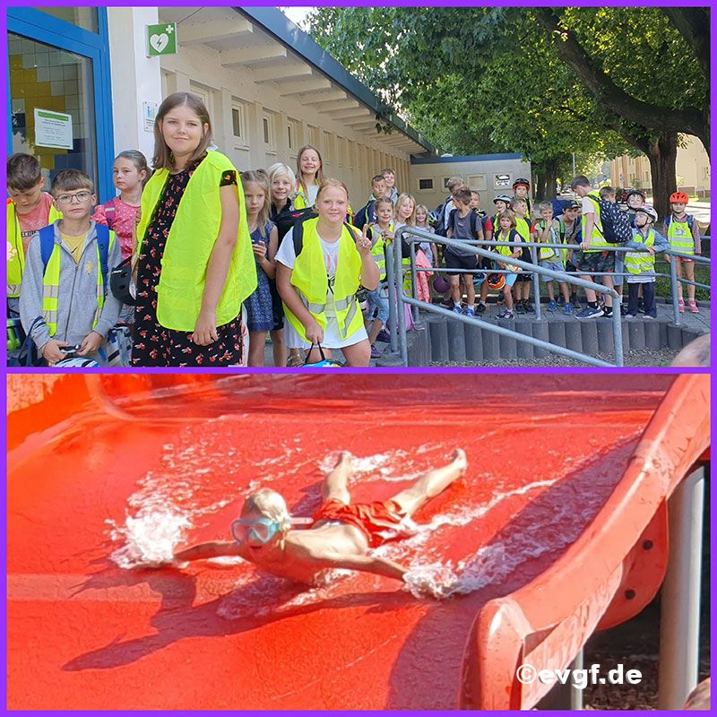 Während wir am Dienstag über Schleichwege und wenig befahrene Straßen Richtung Rosengarten zum Spielplatz fuhren, ging es am Mittwoch auf dem direkten Weg zum Schwimmbad.