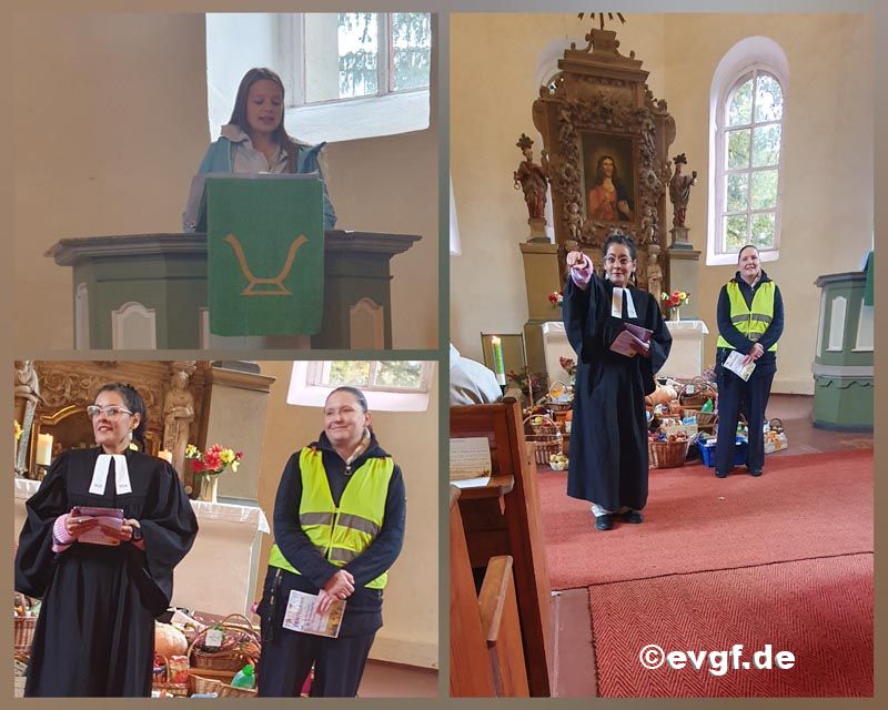 Um zehn Uhr begann unser gemeinsamer Gottesdienst in der Euloer Kirche. Zum ersten Mal begleiteten uns auch die Vorschulkinder, die an unserem Vorschulprogramm am Freitag teilnehmen. In einer sehr gut gefüllten Kirche begann nun der Erntedankgottesdienst, bei dem wir Gott für seine Gaben danken wollten.