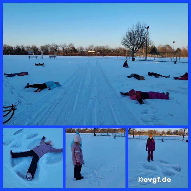 Am 7.1.2026 nutzten wir sofort das Winterwetter und machten uns mit den Klassen 3 & 4 auf den Weg zum Sportplatz.