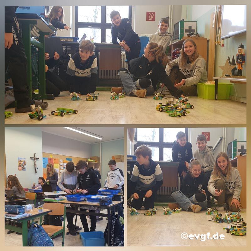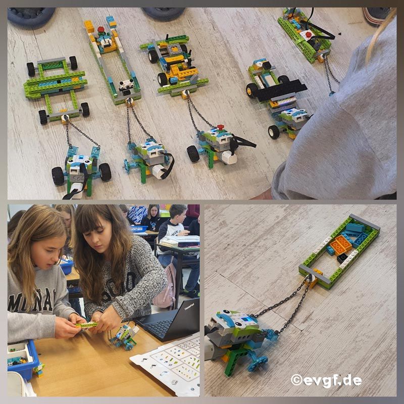 Dazu bietet sich der Einsatz der WeDo-Kästen besonders gut an. Mit Projekten, in denen die Kinder selbst fahrbare Objekte bauen konnten, die dann in der Geschwindigkeit oder der Bewegung beeinflusst werden konnten, nahmen die Schülerinnen und Schüler die Phänomene genauer unter die Lupe. Erfolgreich erprobte sich die Klasse in unterschiedlichen Experimente