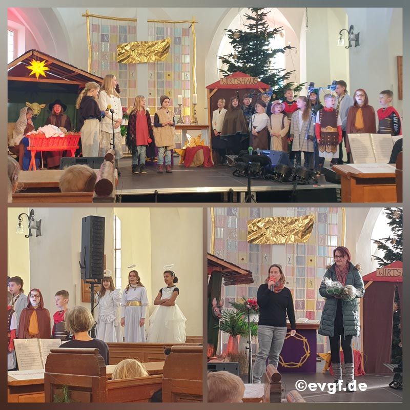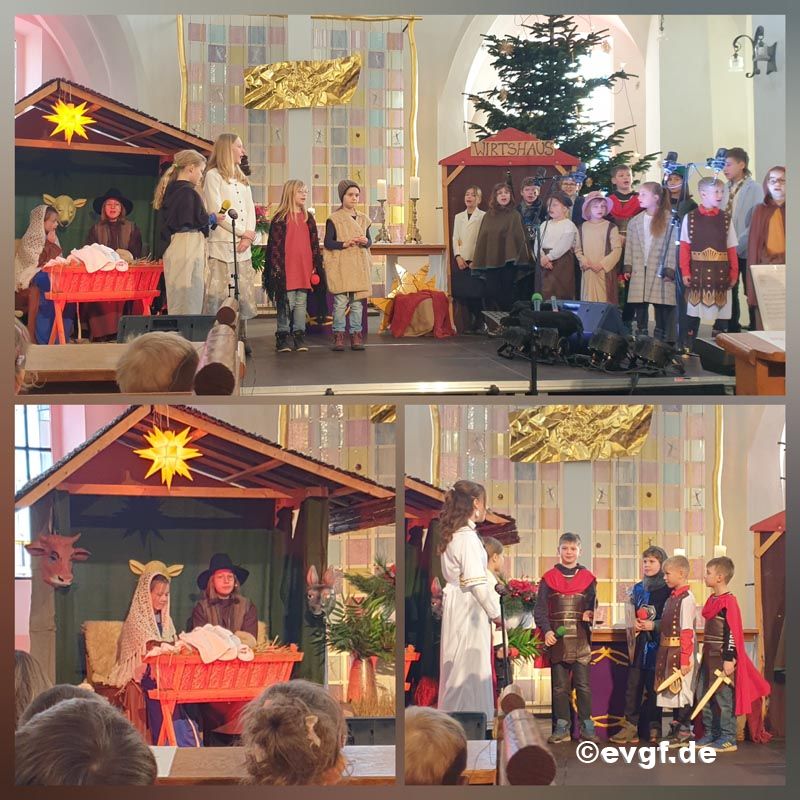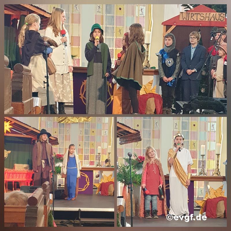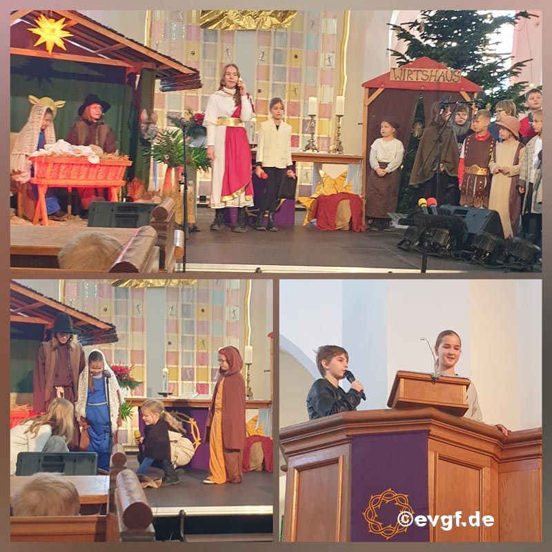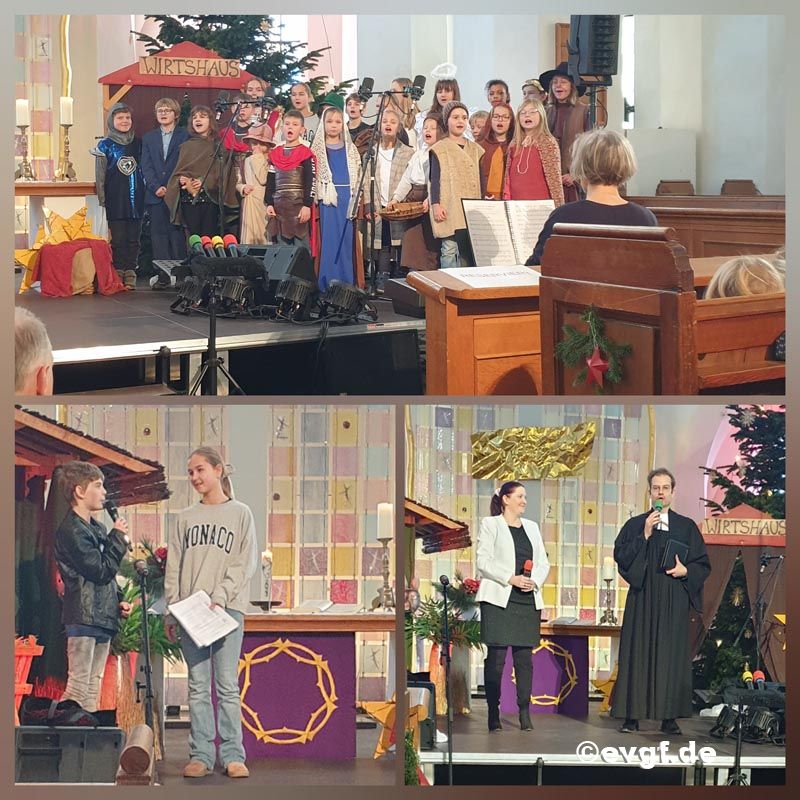 In einem Musical wurde die Weihnachtsgeschichte sehr anschaulich und mit Liebe zum Detail präsentiert. Mit traditionellen und modernen Elementen fand diese Darstellung bei Jung und Alt in der gut gefüllten Kirche schnellen Anklang und wurde euphorisch am Ende beklatscht.