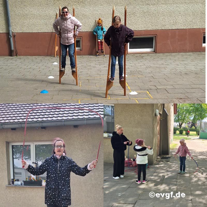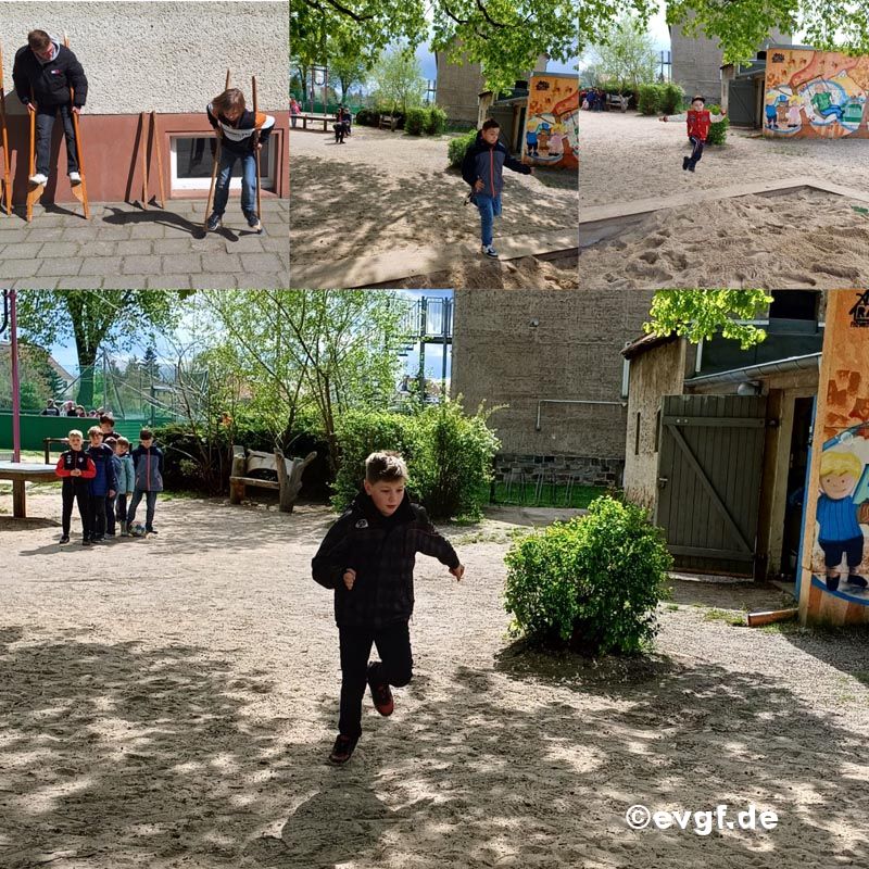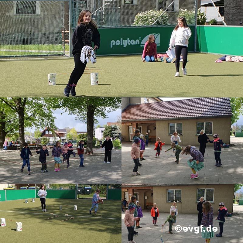 An verschiedenen Stationen - wie z.Bsp. Wettrennen, Wettklettern, Weitsprung und Seilspringen, konnten sich die Kinder, aber auch die Erwachsenen, untereinander messen.