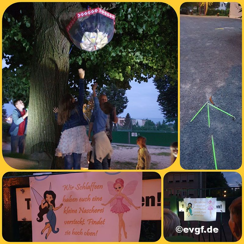 Mit kurzem Halt auf dem Spielplatz ging es auch schon wieder zurück, wo die nächste Überraschung wartete. Kleine Schlafelfen, haben eine Kleinigkeit auf dem Schulhof versteckt.