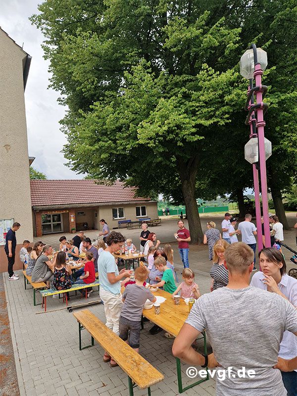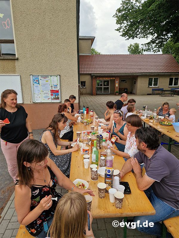 Der Fußballplatz war auch wieder sehr beliebt. Zwei Muttis haben Kinderschminken angeboten. Das gefiel den Kids natürlich sehr. Jede Familie brachte etwas zum Essen oder zum Trinken mit und ein paar Papa´s haben gegrillt. Das Gewitter hat auch so lange gewartet, bis fertig gegrillt war. Es war ein schöner und gemütlicher Nachmittag, der ohne die GEMEINSCHAFT gar nicht möglich gewesen wäre.