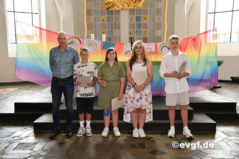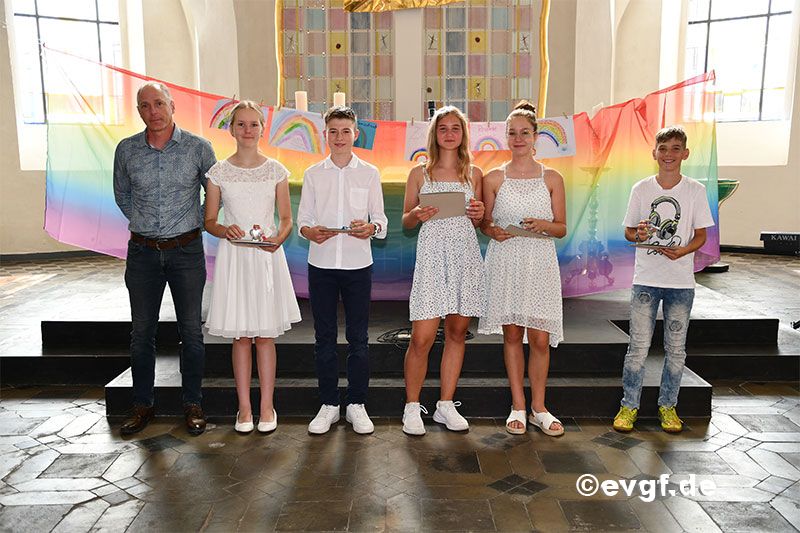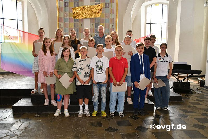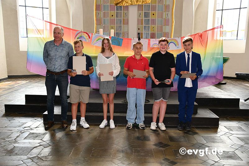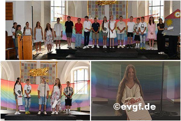 DSC 8436 1Sehr bewegend war der Abschlussgottesdienst der Klasse 6 am letzten Schultag. In einer gut gefüllten Kirche erzählten die Sechstklässler in ihren „News“ von ihrer Zeit an unserer Schule. Themen wie Klassenfahrten, Unterrichtsstörungen, sportliche Erfolge oder unangenehme Momente im Schulleben wurden sehr spritzig aufgezeigt.