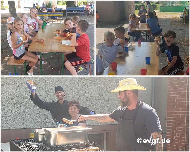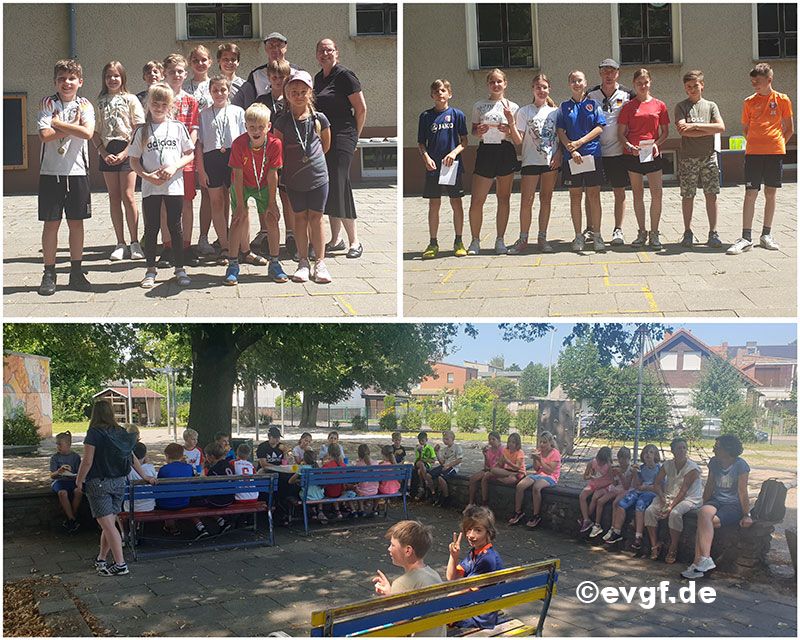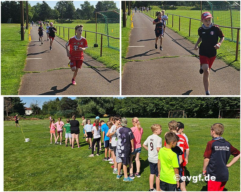 sportfest 7Am 15.07.24 feierten wir unser jährliches Sportfest bei schönstem Wetter. Durch den Vierkampf konnten sich die Kinder im Weitsprung, 800-Meter-Lauf, Weitwurf und Sprint ausprobieren. Die vorbereiteten Spaßaktionen wie Gummistiefelweitwurf oder Sackhüpfen blieben verweist, da die Pausen zwischen den Stationen dazu genutzt wurden, sich im Schatten zu erfrischen.