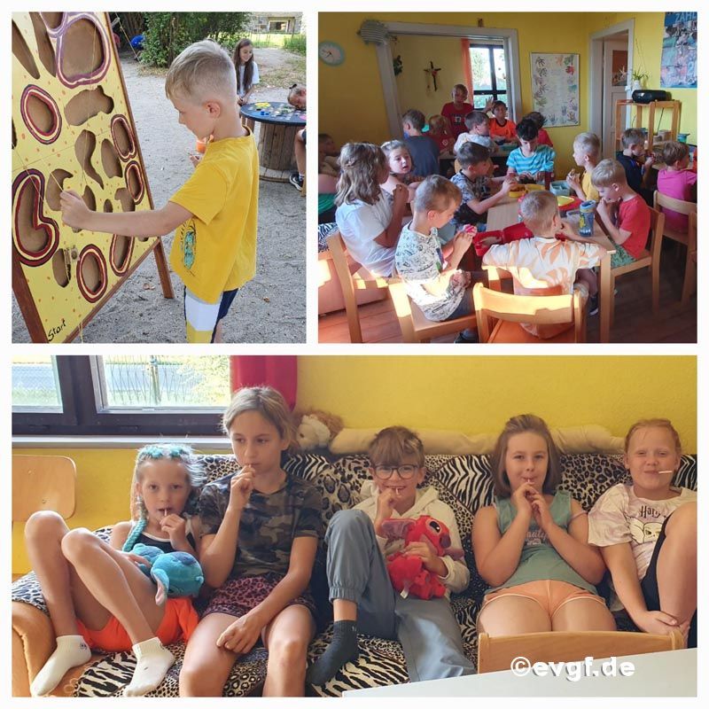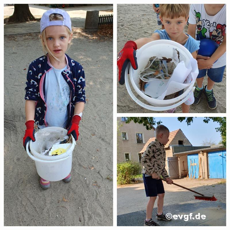 Es wurden z.B. neue Fenster und Brandschutztüren eingebaut, der Treppenaufgang erneuert und viele weitere Kleinigkeiten erledigt. Dementsprechend musste geräumt werden und jede helfende Hand wurde dabei benötigt. Überall waren fleißige Kinder zu sehen. Natürlich kamen das Spielen und Kennenlernen mit den neuen Erstklässlern nicht zu kurz.