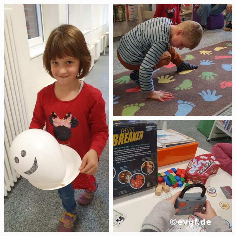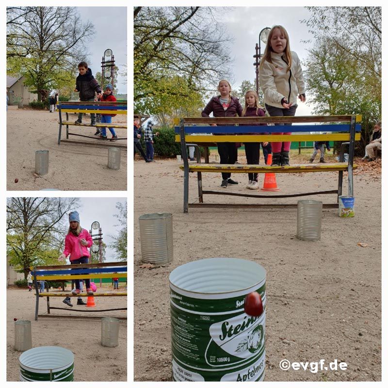 Ein Dank geht an das Mitarbeiterteam der Forster Stadtbibliothek, welches uns einen schönen Tag mit vielen kreativen Spielen ermöglicht hat. Eine große Freude kam besonders beim Kürbis-Bowling auf, dass auf diese Art wohl auch noch nicht gespielt worden ist. Spielerisch ging es auch bei unserer Herbstolympiade weiter, bei denen sich die Kinder vor allem mit ihrer Geschicklichkeit und Treffsicherheit mit Kastanien und Haselnüssen ausprobieren konnten. Kleines Highlight war wieder unser Blätterweitwurf, bei so mancher auf recht kluge Ideen kam. Am letzten Tag ließen wir unsere Ferien mit einem Outdoor-Kino, warmen Tee und Knabberzeug ganz entspannt ausklingen und freuen uns schon auf das nächste Mal, wenn es wieder heißt, "die schönste Zeit ist die Ferienzeit."