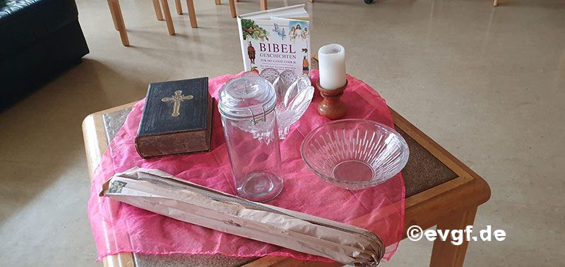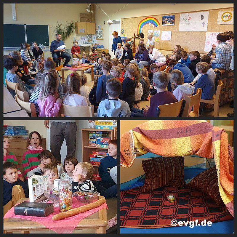 In unserer gemeinsamen Andacht haben wir genau dieses Thema beleuchtet. Das Teilen eines kleinen Brotes gelang uns doch recht gut und so bekamen über 60 Menschen ein Stückchen davon ab. Diesen Feiertag in Kreativität ausdrücken konnten die Kinder im Speiseraum. Dort wurde bemalt, geklebt und verziert. Eine Gedankenhöhle mit leiser Musik und einem LED-Teelicht-Kreuz wurde gern genutzt, um sich daran zu erinnern, wie gut wir es haben oder um eine Bitte für Andere auszusprechen. Zu guter Letzt hatten die Kinder die Möglichkeit, sich einen Kurzfilm über den Zöllner "Zachäus" anzuschauen. Ein raffgieriger Mann, der Buße tat und sein Leben änderte.