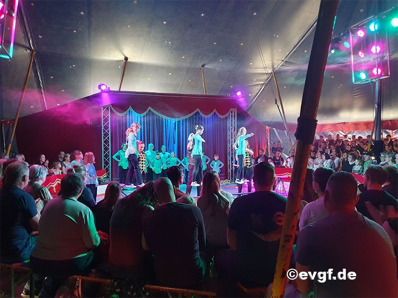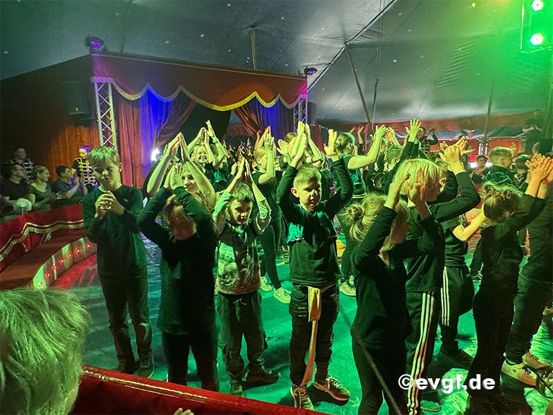 Hier konnten die Kinder sehen, was in der Manege alles möglich ist. Im Anschluss begann für die Schülerinnen und Schülern die Übungsphase. Nach der Gruppenaufteilung wurde fleißig geprobt, trainiert und die eigenen Grenzen ausgetestet. Besonders beeindruckend war es zu beobachten, wie die Kinder aller Altersgruppen als Team zusammenwuchsen. Egal ob als Clown, Artist, Akrobat, Tellerdreher, Pirat, Fakir oder Seiltänzer - alle bildeten eine starke Gruppe. Nach einer gelungenen Generalprobe folgte am Freitag die Vorstellung vor den Familien. Aufregung machte sich breit, aber am Ende wurden alle Akteure mit großem Applaus für ihr hartes Training belohnt. Wir bedanken und beim Zirkus Aron, dem Mehrgenerationenhaus, den Helfern des Auf-und Abbaus sowie bei allen Sponsoren. Sie alle haben dazu beeigetragen, dass wir als Schule an diesem Erlebnis teilhaben konnten.