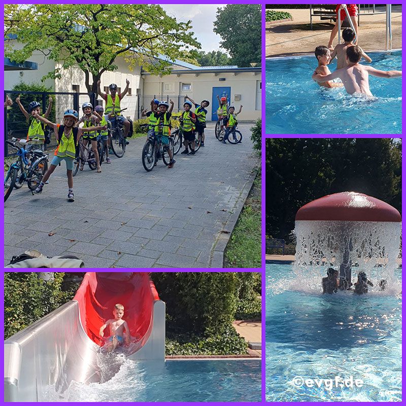 Während wir am Dienstag über Schleichwege und wenig befahrene Straßen Richtung Rosengarten zum Spielplatz fuhren, ging es am Mittwoch auf dem direkten Weg zum Schwimmbad.