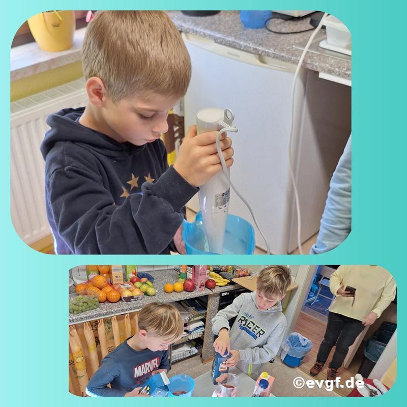 Die Woche begann mit einem fruchtigen Höhepunkt. Die Kinder brachten eine bunte Vielfalt an Obst mit, von saftigen Beeren bis zu exotischen Früchten. Gemeinsam wurde geschnippelt, gemixt und püriert, um leckere Smoothies zu kreieren. Jeder kleine Barkeeper hatte sichtlich Spaß daran, seine ganz persönliche, farbenfrohe und gesunde Kreation zu mixen.