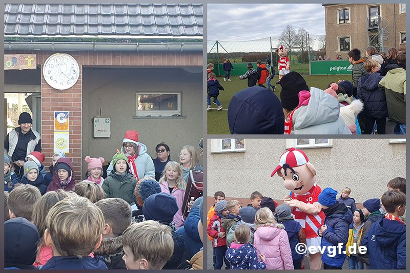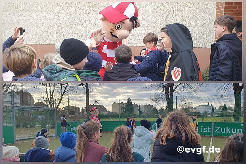 Am 7. Dezember war die Freude riesig: Zur ersten Hofpause erwartete die Kinder unserer Schule ein ganz besonderer Gast. Aus dem Energie-Cottbus-Stadion reiste ein echter Star an – das Maskottchen des Fußballvereins.Lauzi sorgte sofort für strahlende Gesichter.